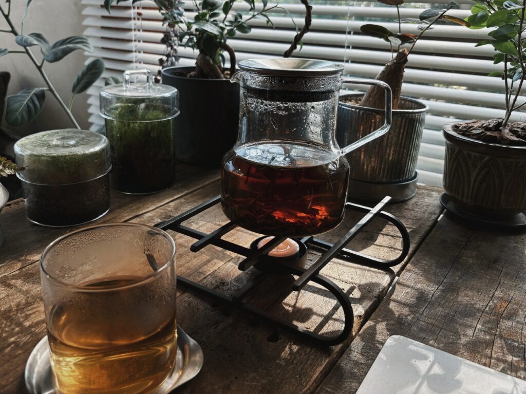 この日は自分で茶葉をブレンドしてみました。無印良品の金木犀の茶葉が何にでも合うので色んなお茶に混ぜてます。美味しかったです。