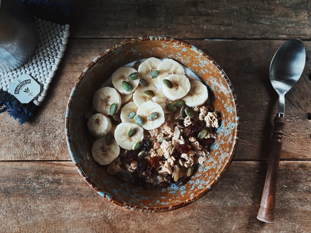 デザートというよりはサラダに近い感覚で食べています。果物と種実類を食べるためのヨーグルトボウル、ですね。