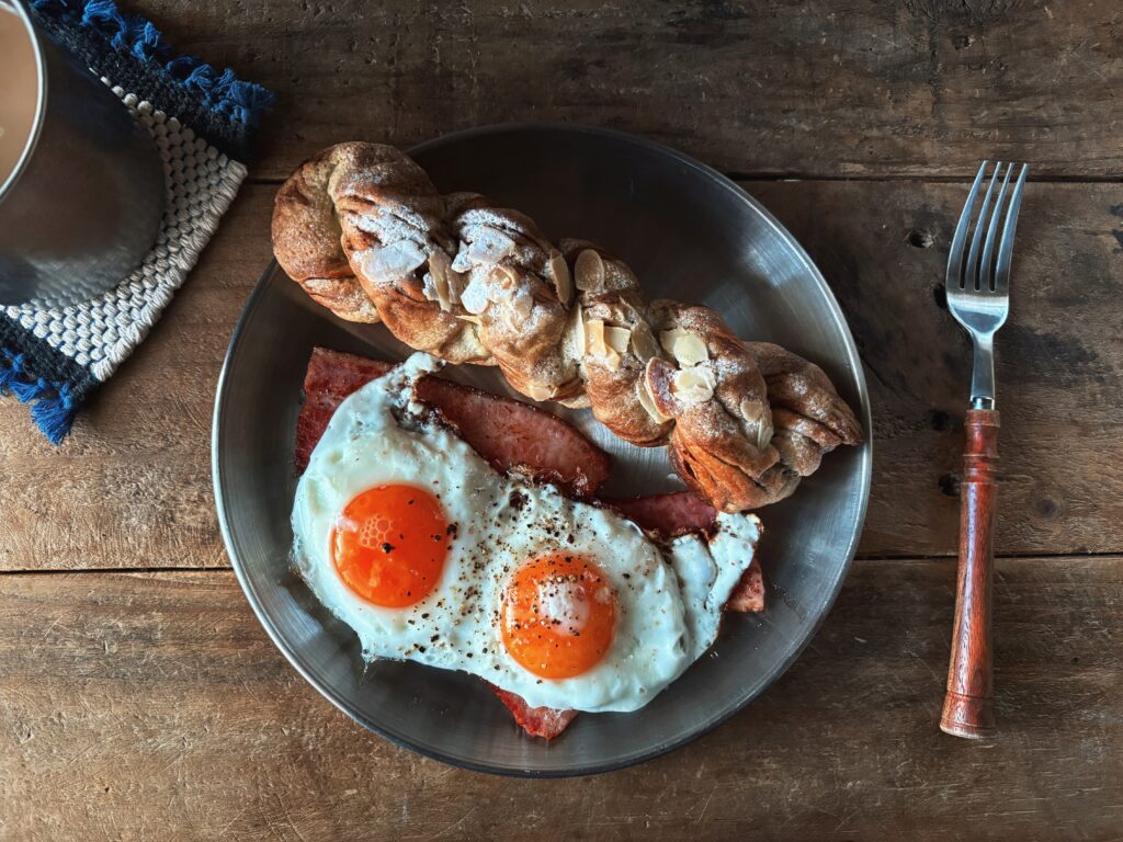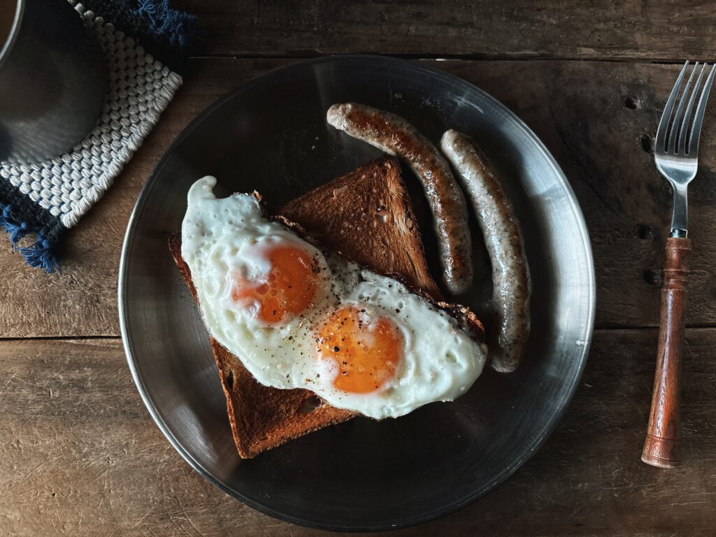 かんたん朝食シリーズ。下の写真は肉屋のソーセージとラピュタパンです。