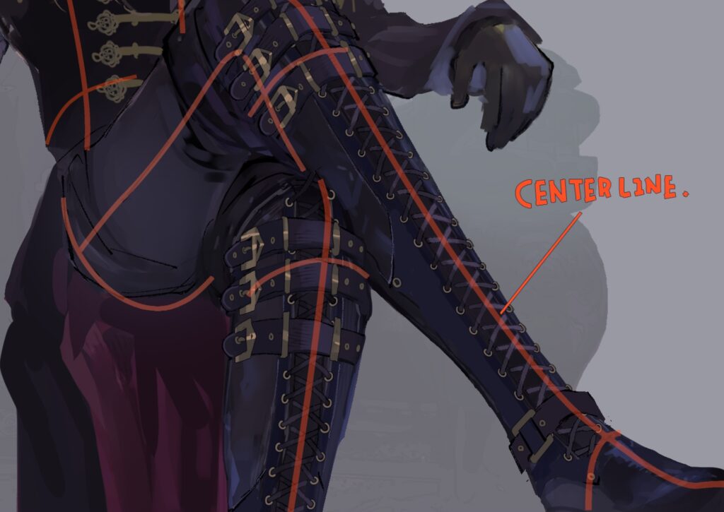 因みにブーツの描き込みとガイド線はこんな感じです。
