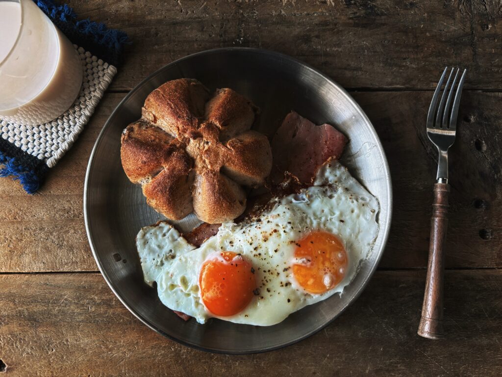 胡桃パンのプレート。下は簡単に済ませた日の朝食です。