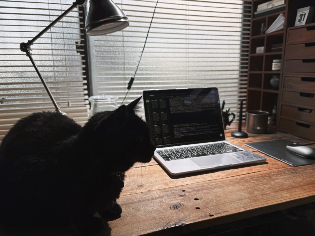 作業妨害に勤しむ愛猫ちゃんです。彼女に邪魔されるのが嬉しくて嬉しくて作業なんてやってられません。