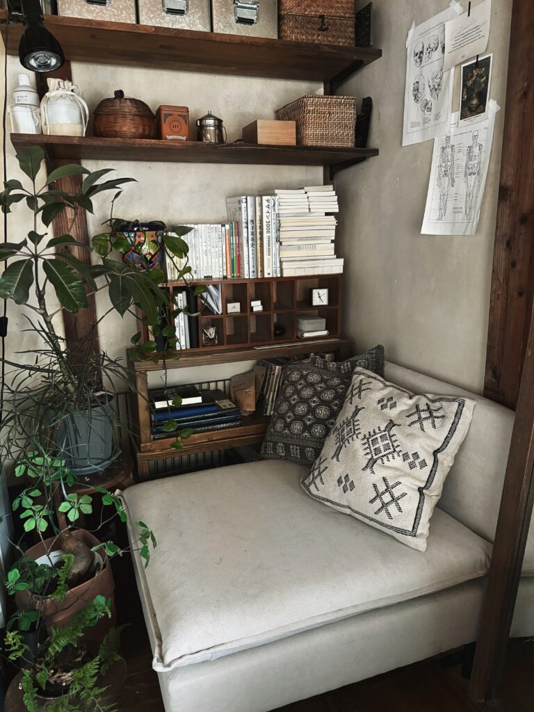 Xのフォロワーさんからバリ島みたいと言っていただきましたが、部屋作りの目標としてエスニックな雰囲気を目指しているので、その意図が伝わったのなら嬉しいですね。