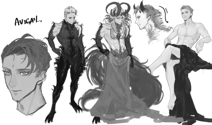 強く刺さる要素として「体格差」が好きな私ですが、初期からネロ(現アヴィゲイリス)の身長は188センチと高身長の設定でした。そこから更にゼロの設定で2メートルになり、現在は+角の長さも加えて270センチになりました。…