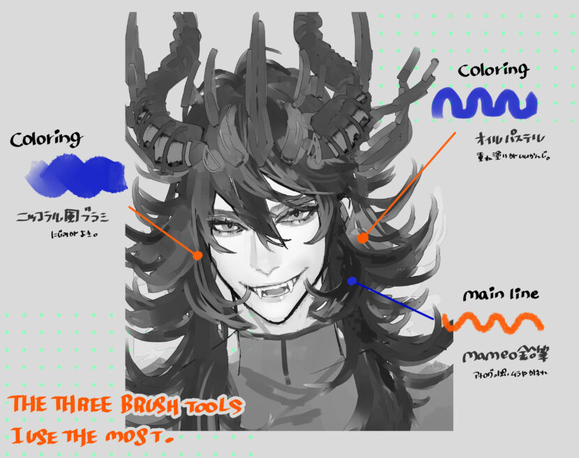 しっかりと表情のある顔を描く練習。彼はもっと暗い笑い方をすると思うのでこの笑みの描き方は相応しくない気がします。でも歯並びとか牙とか初めて描いた割には上手く書けたかな。…