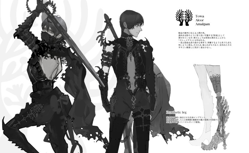 Xに掲載用のキャラクターシートを制作しました。デザインに凝ったのでせっかくだからこちらにも添付しておきます。今回の作業で世界観設定の更新もしました。高度文明が自壊し衰退の果てに、神話時代へ還元された世界が舞台です。かつての地上の支配者だった人類は減滅し、今や神々に仕えることでしか存在を繋ぐことができません。やっぱりダークファンタジーになりますね。退廃世界、大好きです。 ...